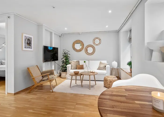 Charming Apartment Near Bryggen van 60 m^2 biedt snelle toegang tot verschillende stadsoriëntatiepunten, zoals de Mariakerk, gelegen op binnen 5 minuten lopen. Het 1-slaapkamer appartement biedt openbare parkeergelegenheid in de buurt.